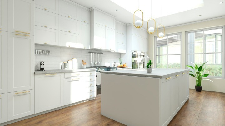 Други карактеристики вклучуваат шкафови со рамен преден дел или минималистчки стил на детали и, секако, средишна плотна. Исто така биле барани и стаклени кабинети, светла палетa на бои – што значи дека идните трендови на бои на кујни ќе бидат многу неутрални.