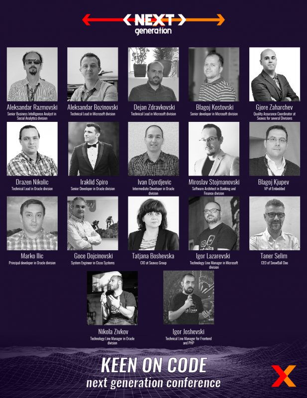 Најголем дел од предавачите се експерти од „Сеавус“, меѓу кои Никола Живков, Technology Line Manager за Java на ниво на Сеавус групација, Игор Лазаревски – Technology Line Manager за .Net на ниво на Сеавус групација, Благој Ќупев, менаџер на ембедед дивизијата, Мирослав Стојманов, софтвер архитект, банкарска дивизија, Ѓоре Захарчев, QA координатор на ниво на Сеавус групација, Дејан Здравковски и Александар Божиновски, Technical Leads во Microsoft дивизија, Благој Костовски, сениор девелопер, Microsoft дивизија, Александар Размовски, сениор бизнис-аналитичар, Social Analytics дивизија. Од Oracle дивизијата ќе презентираат Ираклид Спиро, сениор девелопер, Марко Илиќ, Principal Developer, Иван Ѓорѓевиќ, интермедиејт девелопер, Дражен Николиќ, Technical Lead. Потоа, Танер Селим, извршен директор на SnowBall и Гоце Дојчиновски, систем-инженер во Cisco Systems.