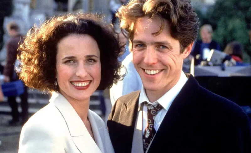 „Четири свадби и погреб“ – го следи закоравениот ерген Чарлс (Хју Грант), кој сфаќа дека можеби ја пронашол љубовта во текот на пет настани – е една од најпопуларните романтични комедии од 90-тите. Сепак, хемијата помеѓу Грант и Енди Мекдауел ја нема.