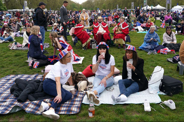 Илјадници седеа во Хајд Парк каде што на огромни екрани го следеа крунисувањето.