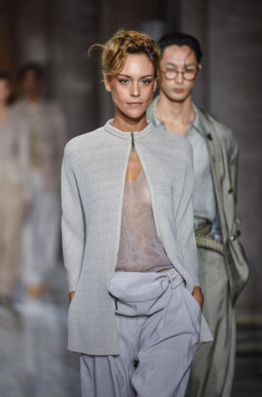 Моделите прошетаа во флуидни, лесни облеки, придружени со жива пијано-музика изведена од италијанскиот композитор Лудовико Еинауди, објави „Ројтерс“.