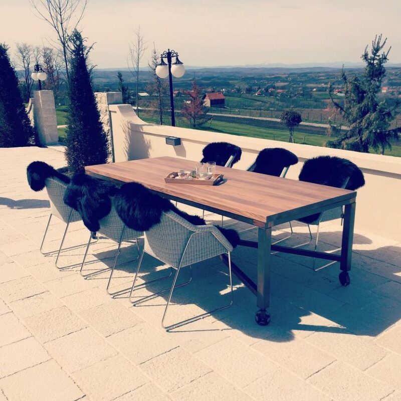 Просторот е префинет со рустични парчиња мебел и антиквитети, што создава топла и пријатна атмосфера.