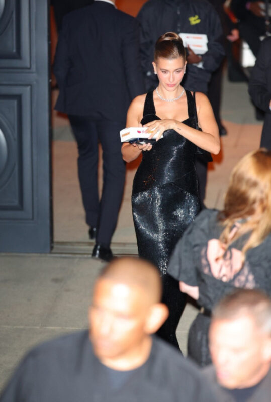 Иако го криеше лицето од фотографите кои ја следеа, беше јасно дека носи спектакуларен винтиџ црн фустан од познатиот дизајнер Боб Меки. Така, Хејли, која стана милијардерка пред неколку месеци благодарение на нејзиниот бренд, се придружи на ексклузивната листа на клиенти на овој дизајнер: Шер, Мерилин Монро, Дајана Рос и други.