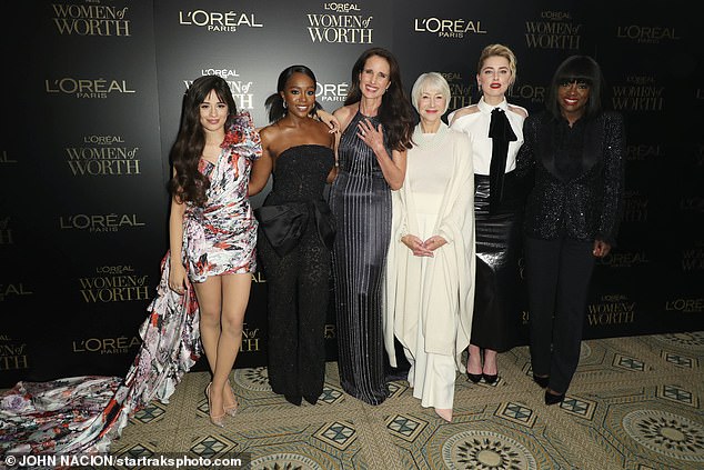 На црвениот тепих таа позира со Камила Кабело, Аја Наоми Кинг, Енди Мекдауел, Амбер Хард и Виола.