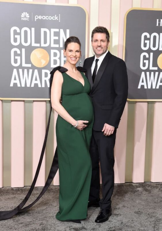 Бремената оскаровка Хилари Свонк се појави на црвениот тепих на „Златните глобуси“ во вторникот вечерта.