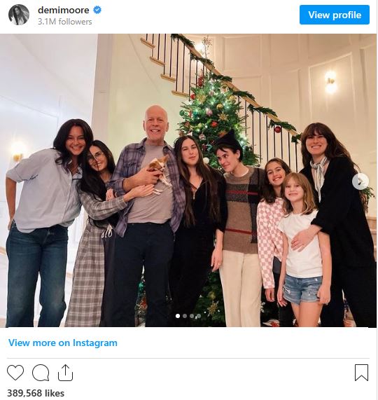 За Вилис, чија состојба наводно се влошува, се грижи целото негово семејство, вклучувајќи ја и поранешната сопруга Деми Мур и нивните три ќерки Рамер, Скаут и Талула. Со нив е неговата сегашна сопруга Ема, како и нивните ќерки Мејбел и Евелин, и сите одлично се сложуваат, што може да се види од најновата објава на Деми Мур на „Инстаграм“.