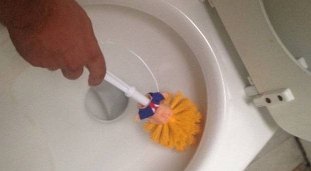 Четките за тоалет со Доналд Трамп се продаваат на интернет-страницата еtsy.com, а продавачот ги рекламира како моќна алатка што ќе направи тоалетот повторно да свети. Популарната четка на крајот на рачката го има ликот на Трамп облечен во син костум и црвена вратоврска.