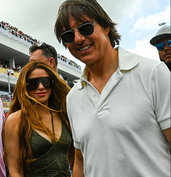 Колумбиската пејачка ги вкрсти патиштата со легендата на Формула 1, Луис Хамилтон, на вечера во Мајами во вторникот среде шпекулации дека таа веќе го привлекла вниманието на Том Круз.