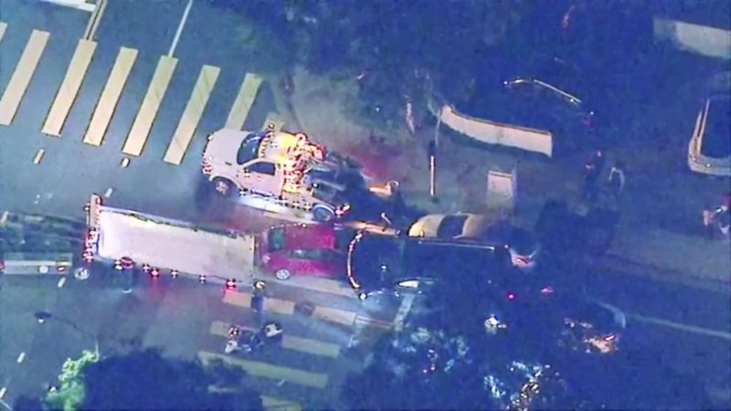 Фотографиите од местото на настанот покажуваат голем теренец над три други возила на раскрсница во близина на неговата куќа во луксузниот кварт Брентвуд.