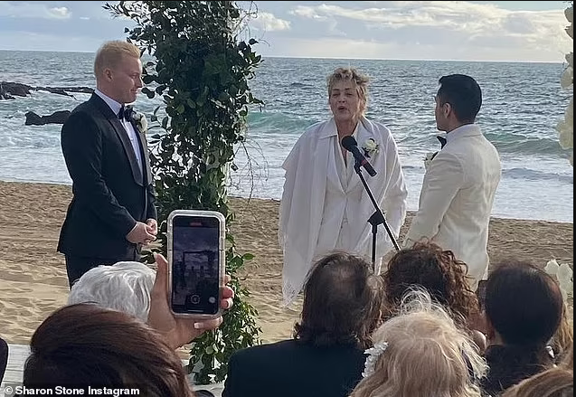 Шерон Стоун откри дека одржала венчавка на двајца луѓе.
