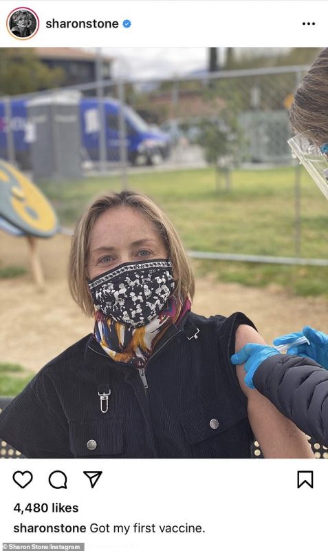 Со оглед на фактот дека Стоун се залагаше за подигање на јавната свест за коронавирусот во текот на изминатата година, таа носи заштитна маска над устата и носот за време на вакцинирањето.