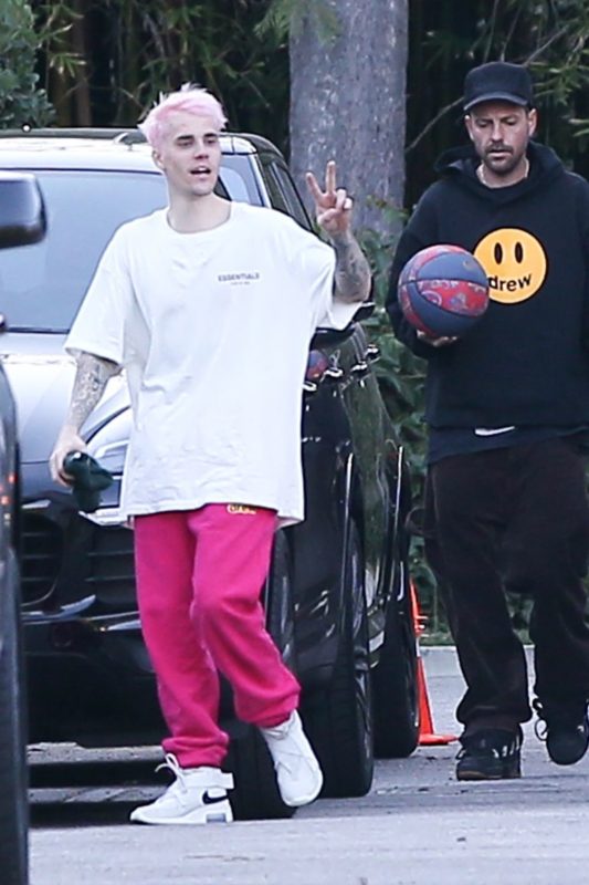 Папараците го забележаа Бибер додека игра кошарка со пријатели во Беверли Хилс, Калифорнија. Што се однесува на стилот за спортување, остана непроменет – преголема бела маица и соодветни бели патики.