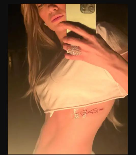 На првата фотографија Џеј Ло ја покажа својата нова тетоважа со знакот на бесконечност и стреличка што минува низ средината.