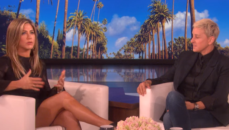 Ѕвездата од „Пријатели“, актерката Џенифер Анистон (50), разговараше со познатата водителка Елен Деџенерес (61) за соблекувањето. Таа истакна дека сака да биде гола и дека нема од што да се срами, дури ни во педесеттите години. Елен на публиката ѝ ги покажа фотографиите на кои Џенифер неодамна позира во топлес за магазинот „Харперс базар“.