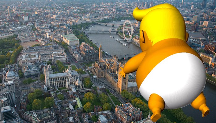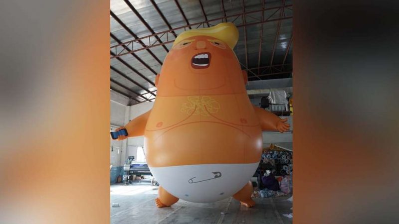Активистите собрале речиси 18 000 фунти за шест метри високата фигура исполнета со хелиум, која, според нив, го рефлектира ликот на Трамп како луто бебе со кревкото его и мали раце.