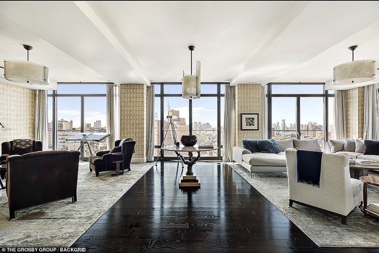 Се простира на површина од 3.951 квадратни метри, има прекрасен поглед на Долниот Менхетен и реката Хадсон благодарение на прозорците од подот до таванот. Има и приватен лифт и приватна градина.