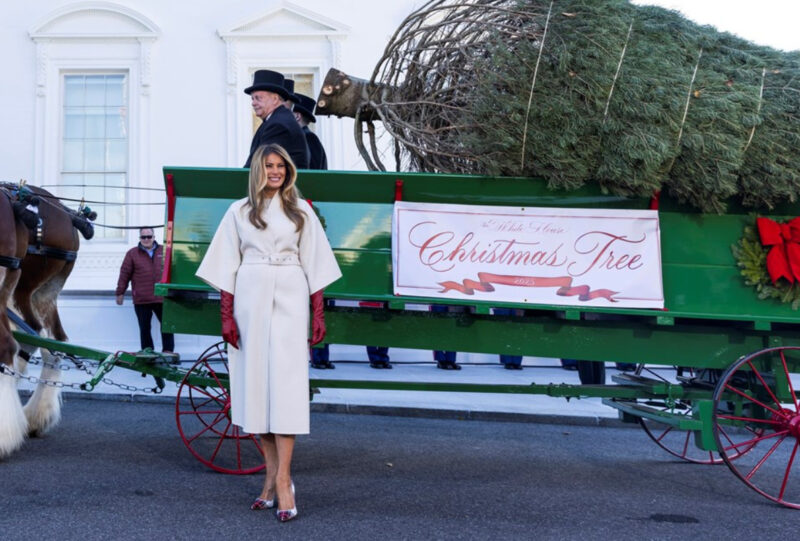 Меланија Трамп ја пречека овогодишната елка пред претседателската резиденција, официјално започнувајќи ја празничната сезона во Белата куќа – сезона за која таа често изразуваше фрустрација за време на првиот мандат на нејзиниот сопруг, пишува People.