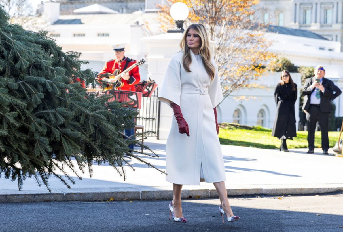 Меланија Трамп ја пречека овогодишната елка пред претседателската резиденција, официјално започнувајќи ја празничната сезона во Белата куќа – сезона за која таа често изразуваше фрустрација за време на првиот мандат на нејзиниот сопруг, пишува People.