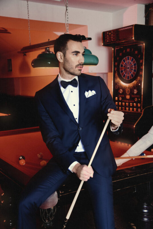 Не ги забораваме ниту момците кои за ваква (или било која друга) свечена пригода би ѝ дале предност на елеганцијата и безвременоста. Кога некој сака вака да изгледа, одбира црно струкирано Bitsiani одело и добриот впечаток е веќе загарантиран.