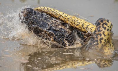 Американскиот фотограф Кевин Доли успеа да сними борба помеѓу анаконда долга осум и пол метри и крокодил во водите на Амазон. Анакондата го обвила кајманот (вид...