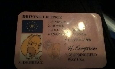 Британец, кој бил запрен од сообраќаен полицаец поради прекршок при возење, ја влошил ситуацијата кога на полицаецот му покажал возачка дозвола со фотографија од Хомер Симпсон...
