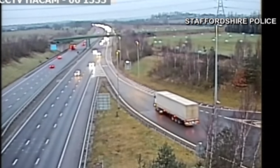 Возач на камион е осуден на шест месеци затвор откако на автопатот М6 во Стафордшир, Англија, извел многу опасно свртување. На видеоснимката направена од надзорните камери...