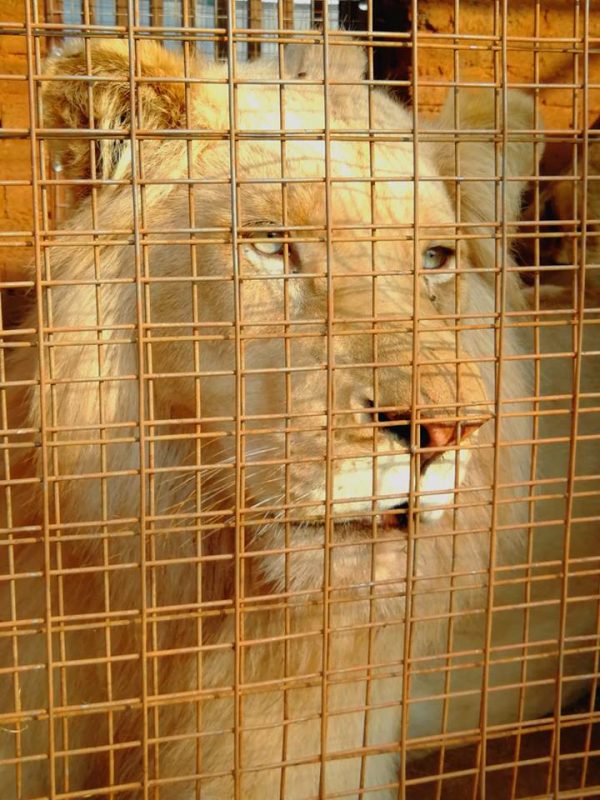 Муфаса беше конфискуван како младенче од приватен сопственик пред три години и беше ставен во засолниште за диви животни во северниот дел на Јужна Африка. Сега активистите стравуваат дека за него се спрема план да биде продаден за аукција со цел да се профитира.