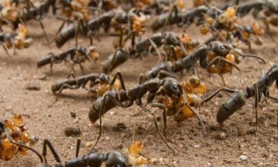 Како и вистинските војници, припадници на вид мравки од субсахарска Африка тргнуваат во борба стапувајќи во формација, а подоцна своите ранети ‘соборци’ ги носат во мравјалникот...