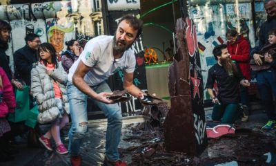Францускиот слаткар и експерт за чоколадо, Патрик Роже, ја прослави 30-годишнината од падот на Берлинскиот ѕид со тоа што направи и постави чоколадна реплика на ѕидот...