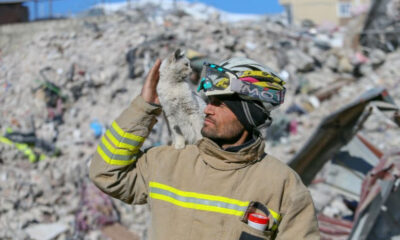 Деновиве на „Твитер“ се споделува видео на кое се гледа човек со мачка на рамото, за кое се вели дека е животно спасено од урнатините во...