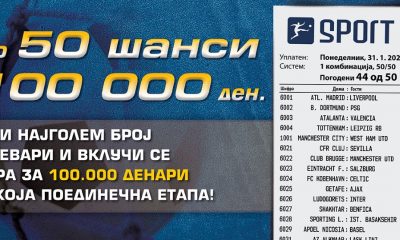 Во Sport Life стартуваше акцијата за најмногу погодени натпревари на тикет: „До 50 шанси за 100 000 денари“ . Истата ќе трае од 31 јануари до...